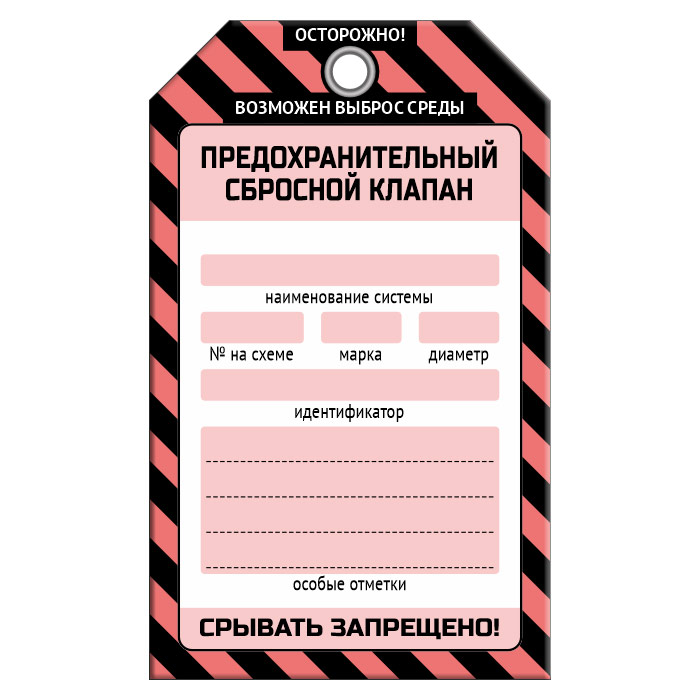 Бирка «ПРЕДОХРАНИТЕЛЬНЫЙ СБРОСНОЙ КЛАПАН» (1 шт., односторонняя, пластик, 70х115 мм) в Ульяновске купить