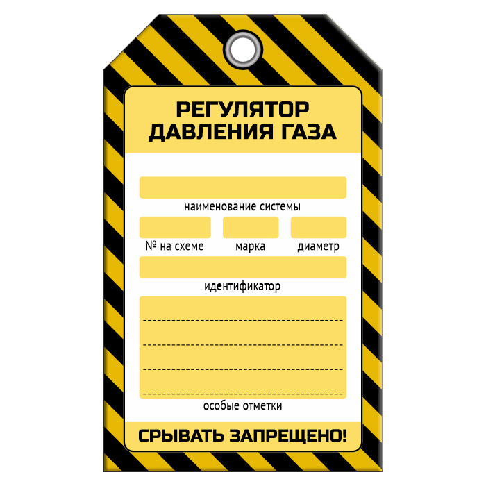 Бирка «РЕГУЛЯТОР ДАВЛЕНИЯ ГАЗА» (1 шт., односторонняя, пластик, 70х115 мм) в Ульяновске купить