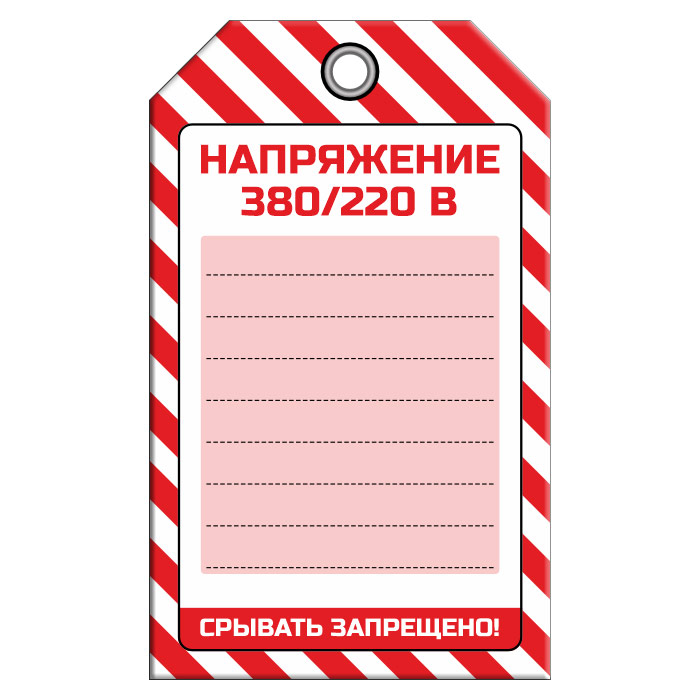 Бирка «НАПРЯЖЕНИЕ 380/220 В» (1 шт., односторонняя, пластик, 70х115 мм) в Ульяновске купить