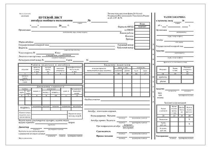Путевой лист автобуса (форма № 6, упаковка из 100 штук) в Ульяновске купить