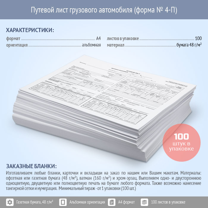 Путевой лист грузового автомобиля (форма № 4-П, упаковка из 100 штук) в Ульяновске купить