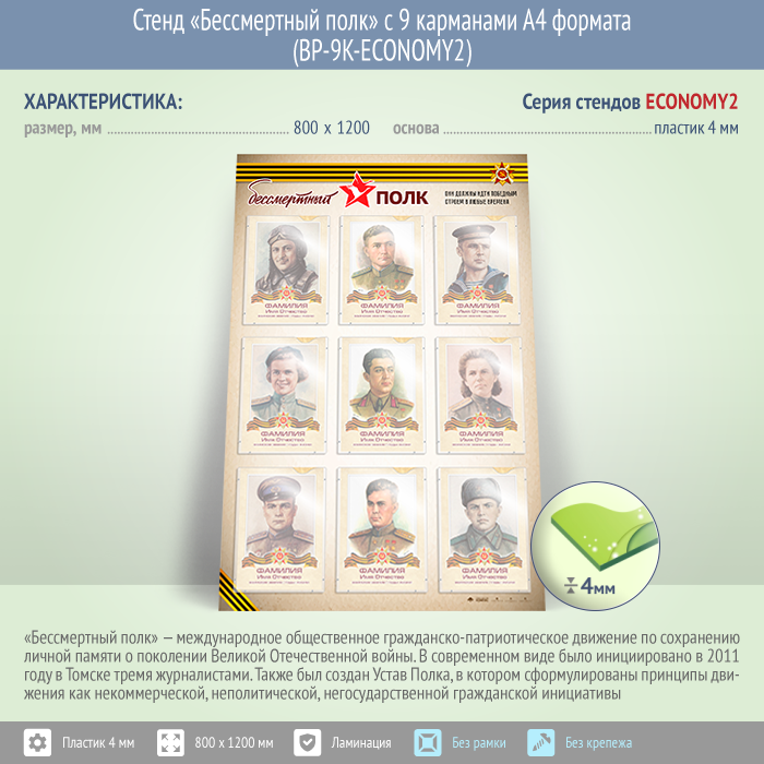 Стенд «Бессмертный полк» с 9 карманами А4 формата (BP-9K-ECONOMY2) в Ульяновске купить