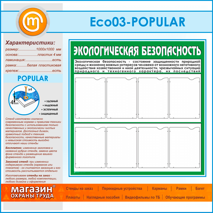 Стенд «Экологическая безопасность» с 8 карманами (ECO-03-POPULAR) в Ульяновске купить