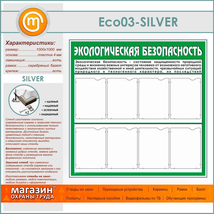 Стенд «Экологическая безопасность» с 8 карманами (ECO-03-SILVER) в Ульяновске купить