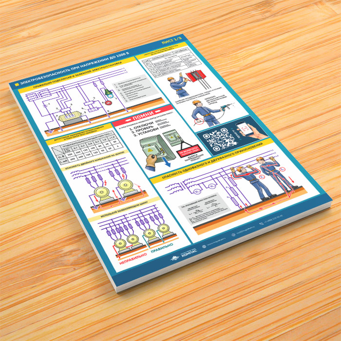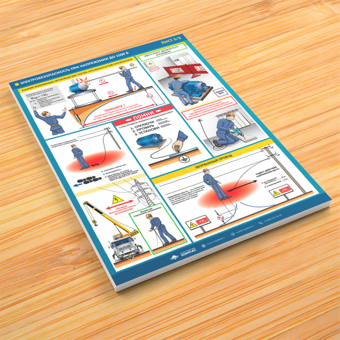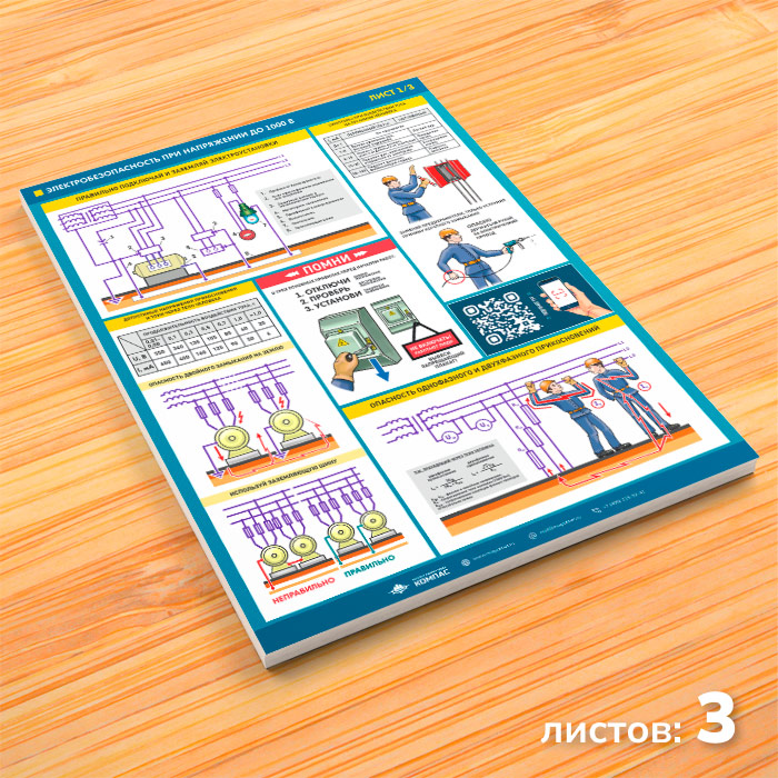 Плакаты «Электробезопасность при напряжении до 1000В» (М-64, ламинированная бумага, А2, 3 листа) в Ульяновске купить