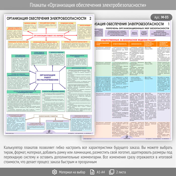 Плакаты «Организация обеспечения электробезопасности» (М-03, 2 листа) в Ульяновске купить