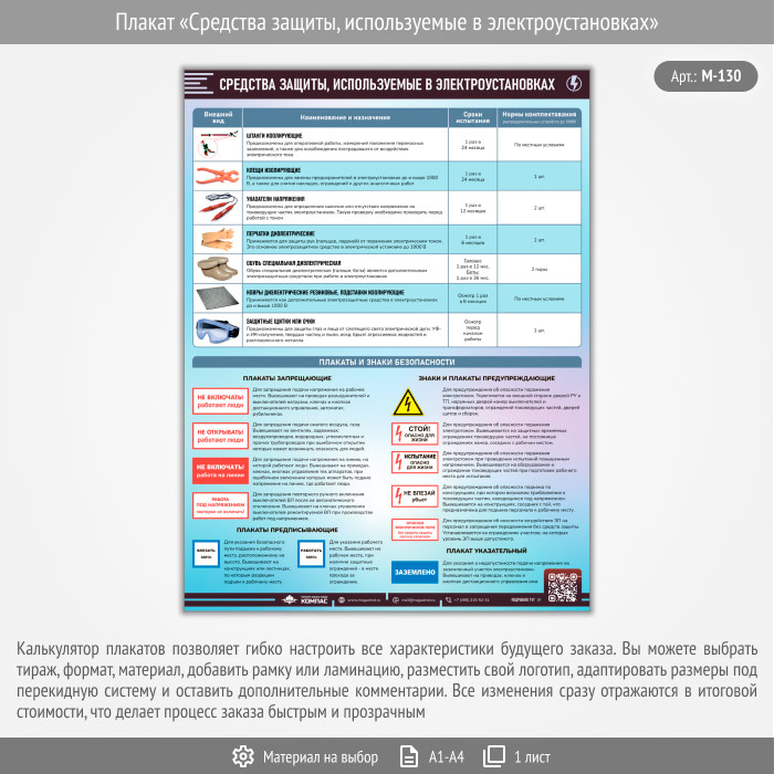 Плакат «Средства защиты, используемые в электроустановках» с QR (М-130, 1 лист) в Ульяновске купить