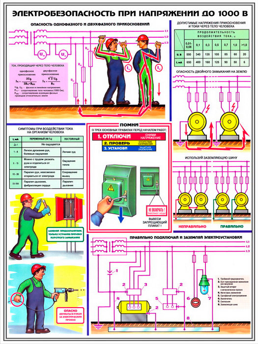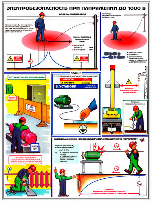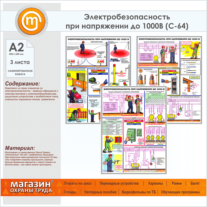 Плакаты «Электробезопасность при напряжении до 1000В» (С-64, ламинированная бумага, А2, 3 листа) в Ульяновске купить