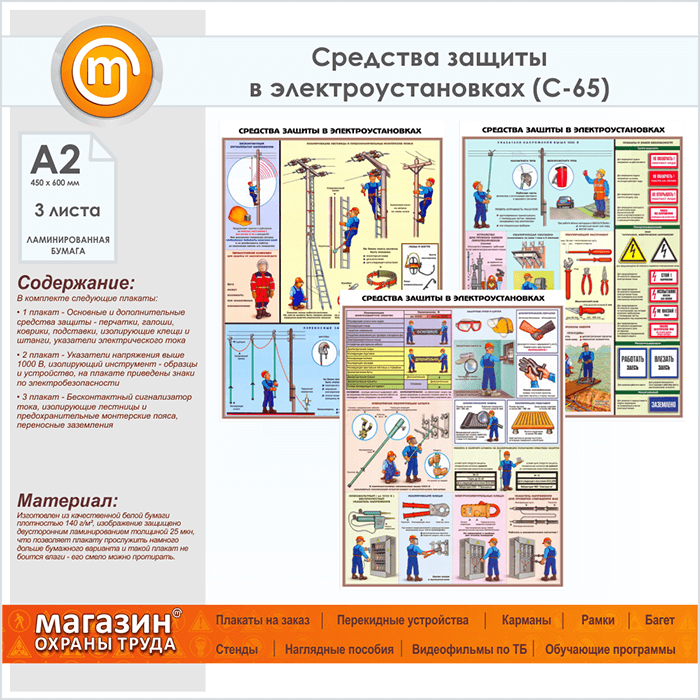 Плакаты «Средства защиты в электроустановках» (С-65, ламинированная бумага, А2, 3 листа) в Ульяновске купить