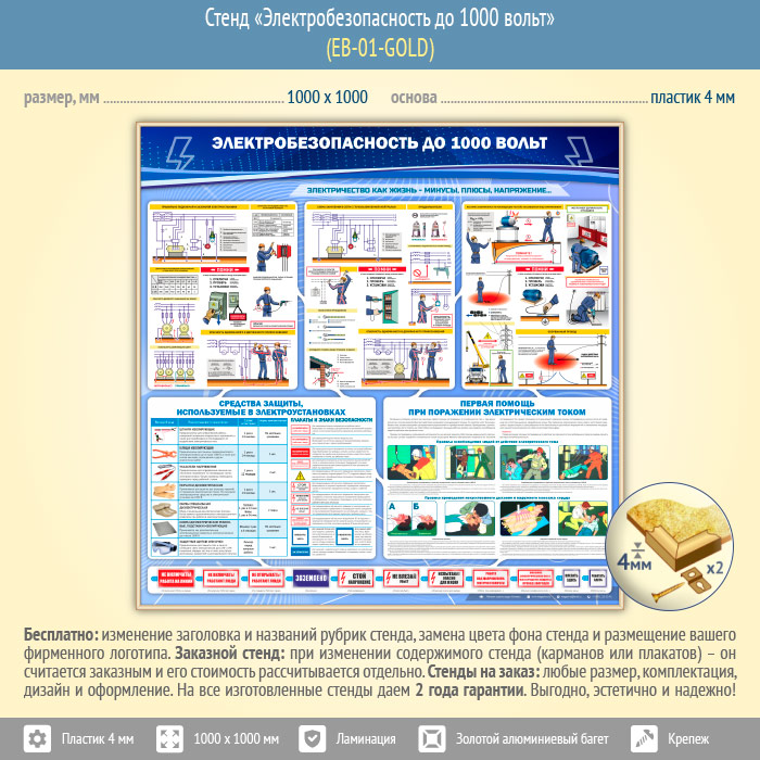Стенд «Электробезопасность до 1000 вольт» (EB-01-GOLD) в Ульяновске купить
