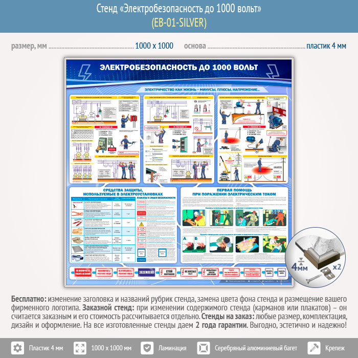 Стенд «Электробезопасность до 1000 вольт» (EB-01-SILVER) в Ульяновске купить