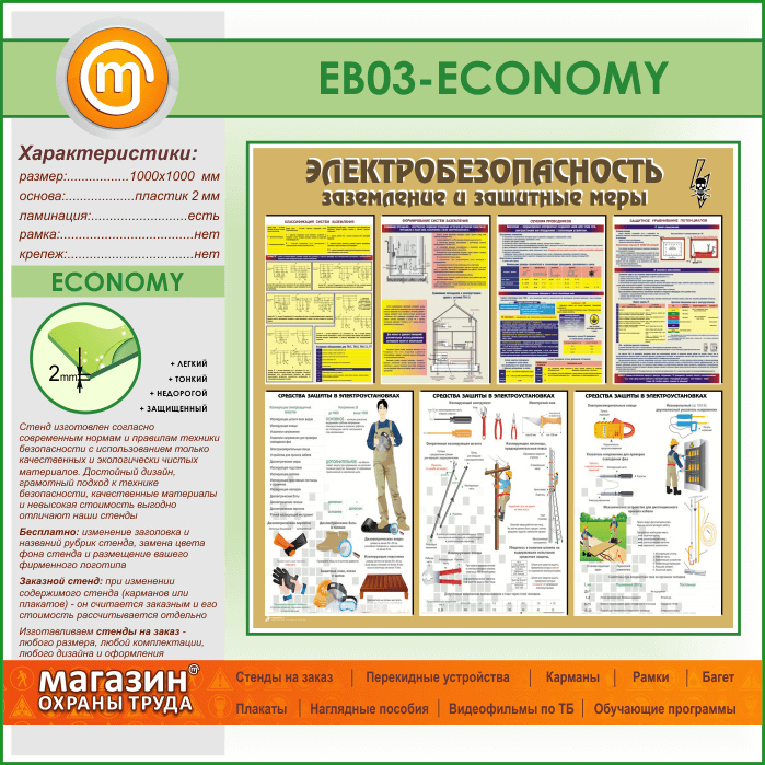 Стенд «Электробезопасность. Заземление и защитные меры» (EB-03-ECONOMY) в Ульяновске купить