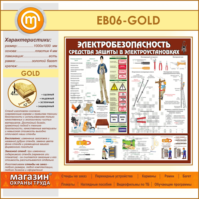 Стенд «Электробезопасность. Средства защиты в электроустановках» (EB-06-GOLD) в Ульяновске купить