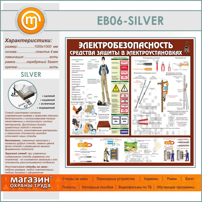 Стенд «Электробезопасность. Средства защиты в электроустановках» (EB-06-SILVER) в Ульяновске купить