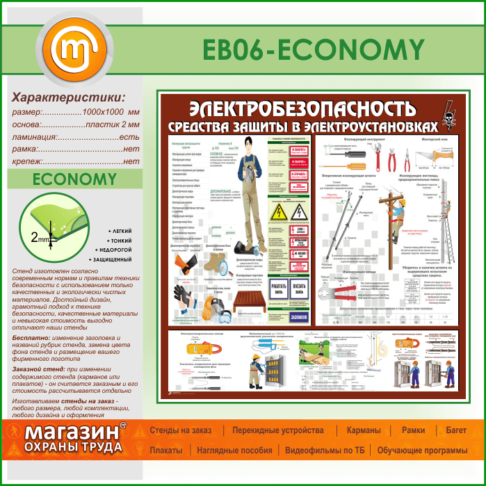 Стенд «Электробезопасность. Средства защиты в электроустановках» (EB-06-ECONOMY) в Ульяновске купить