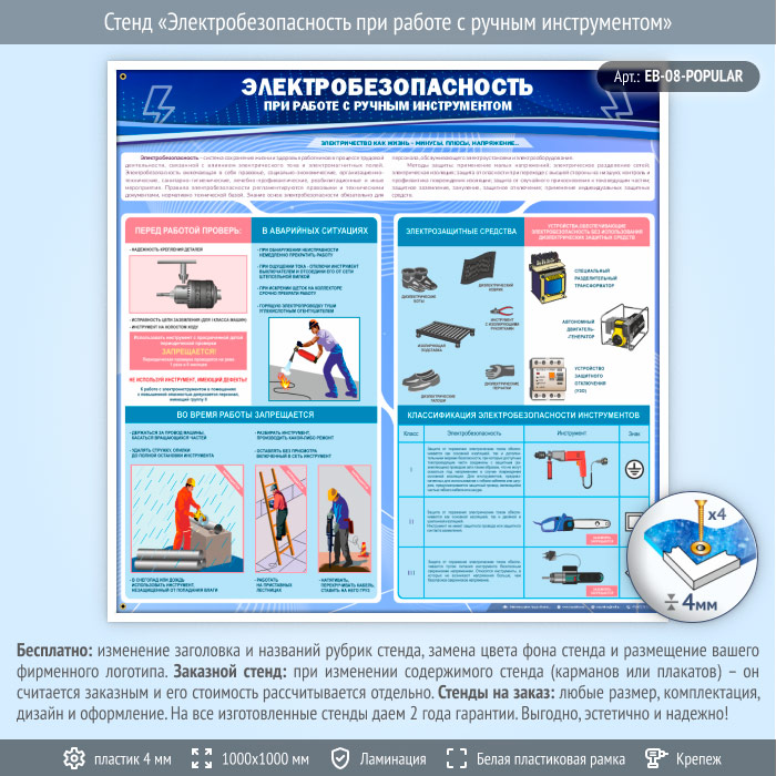 Стенд «Электробезопасность при работе с ручным инструментом» (EB-08-POPULAR) в Ульяновске купить