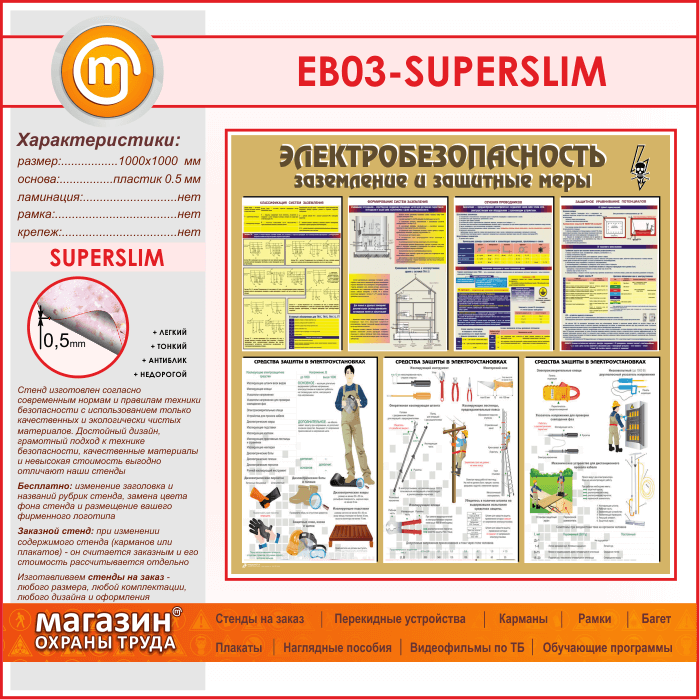 Стенд «Электробезопасность. Заземление и защитные меры» (EB-03-SUPERSLIM) в Ульяновске купить