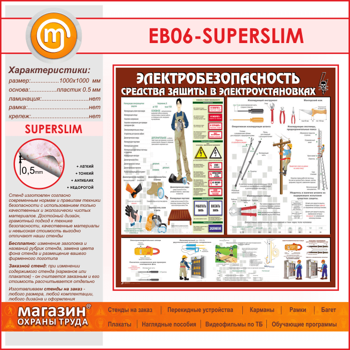 Стенд «Электробезопасность. Средства защиты в электроустановках» (EB-06-SUPERSLIM) в Ульяновске купить