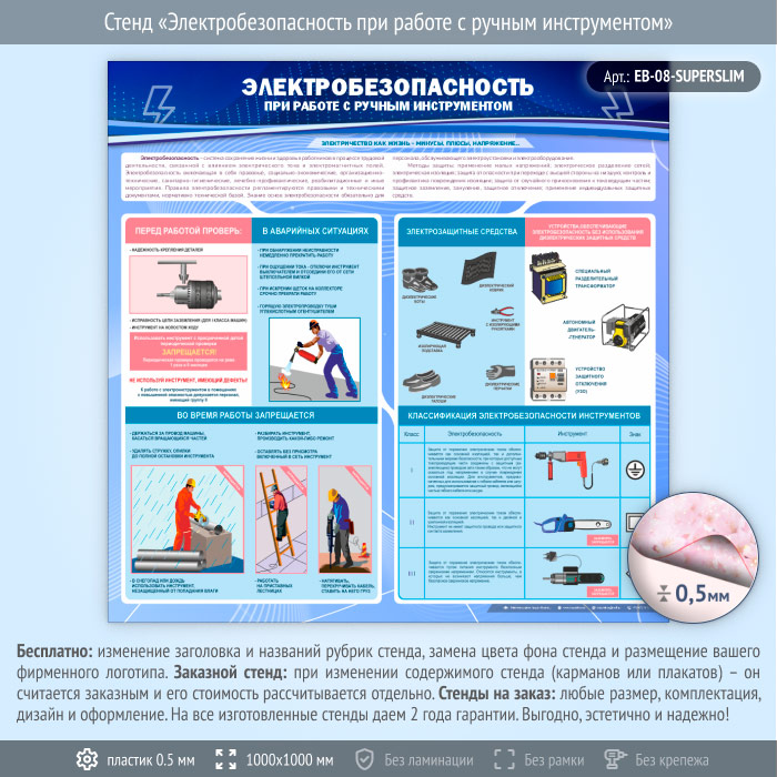 Стенд «Электробезопасность при работе с ручным инструментом» (EB-08-SUPERSLIM) в Ульяновске купить
