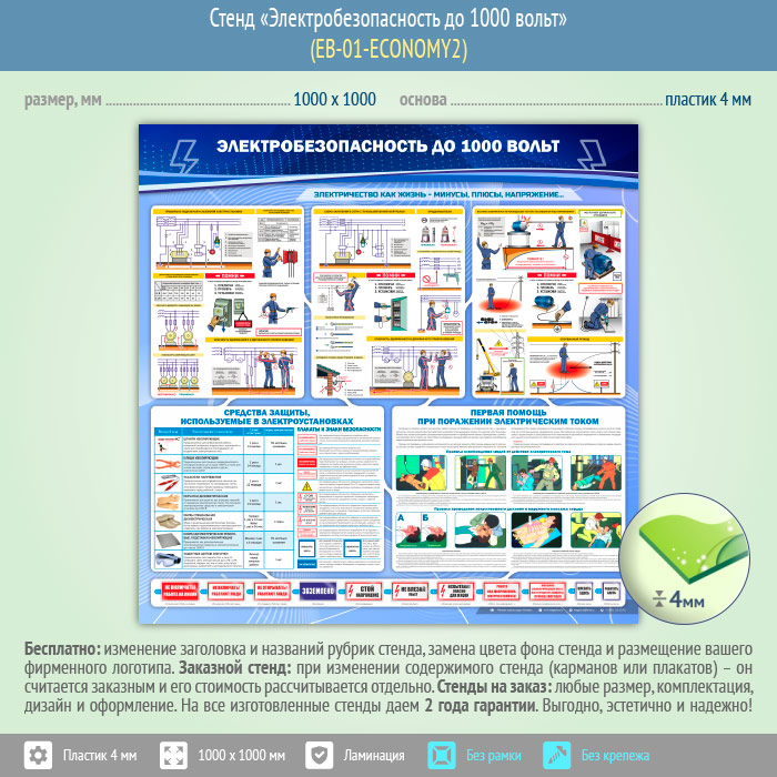 Стенд «Электробезопасность до 1000 вольт» (EB-01-ECONOMY2) в Ульяновске купить