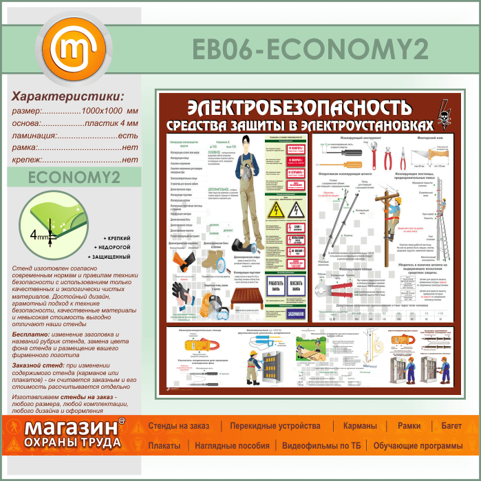 Стенд «Электробезопасность. Средства защиты в электроустановках» (EB-06-ECONOMY2) в Ульяновске купить
