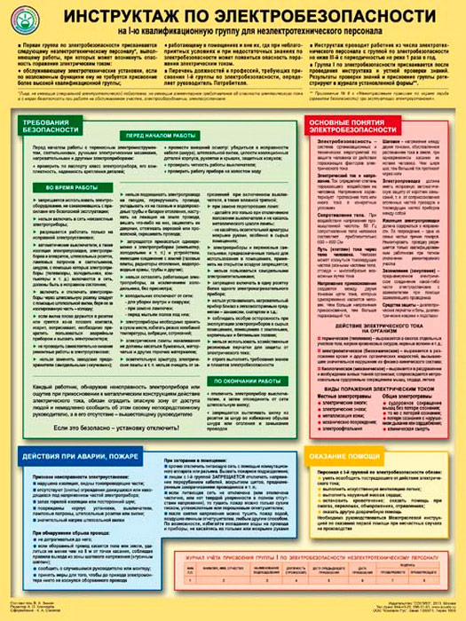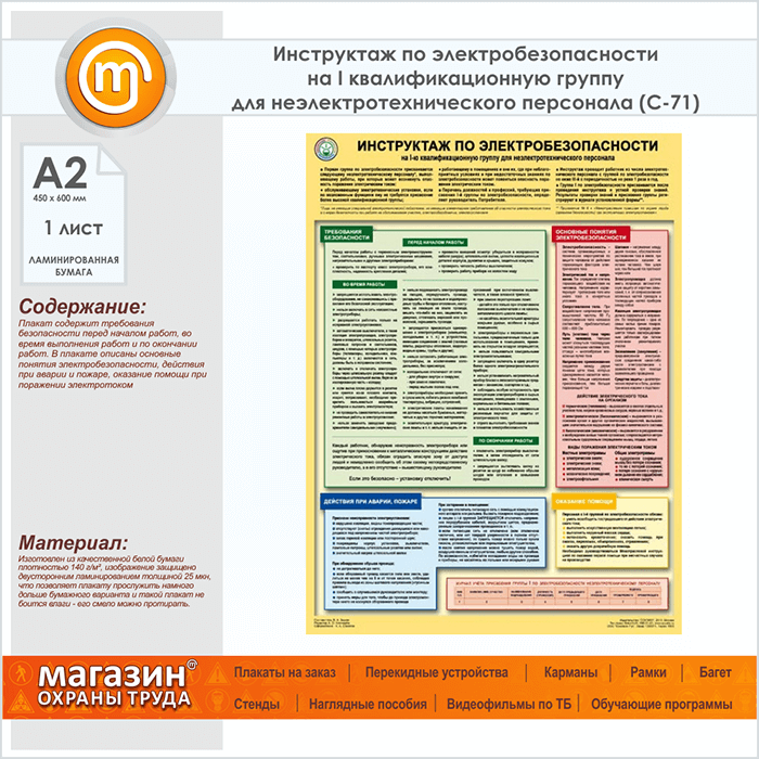 Плакат «Инструктаж по электробезопасности - на I квалификационную группу для неэлектротехнического персонала» (С-71, ламинированная бумага, А2, 1 лист) в Ульяновске купить