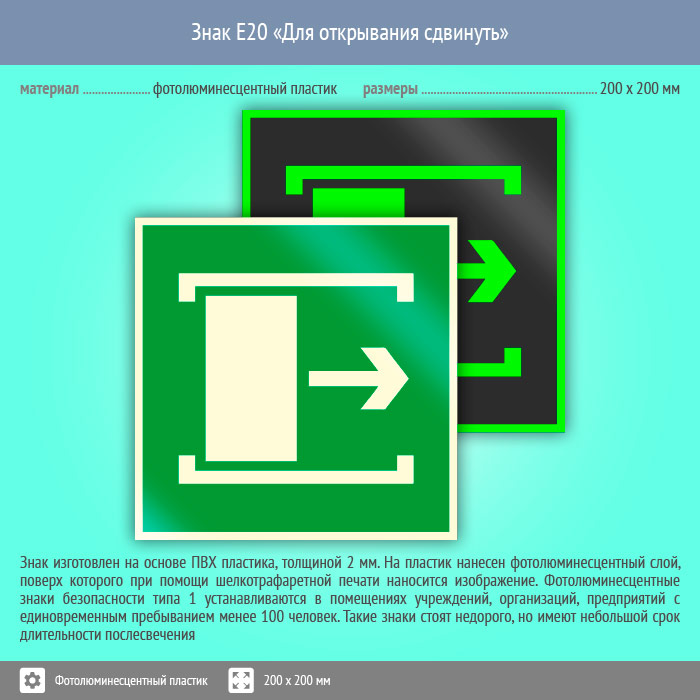 Знак E20 «Для открывания сдвинуть» (фотолюминесцентный пластик, 200х200 мм) в Ульяновске купить