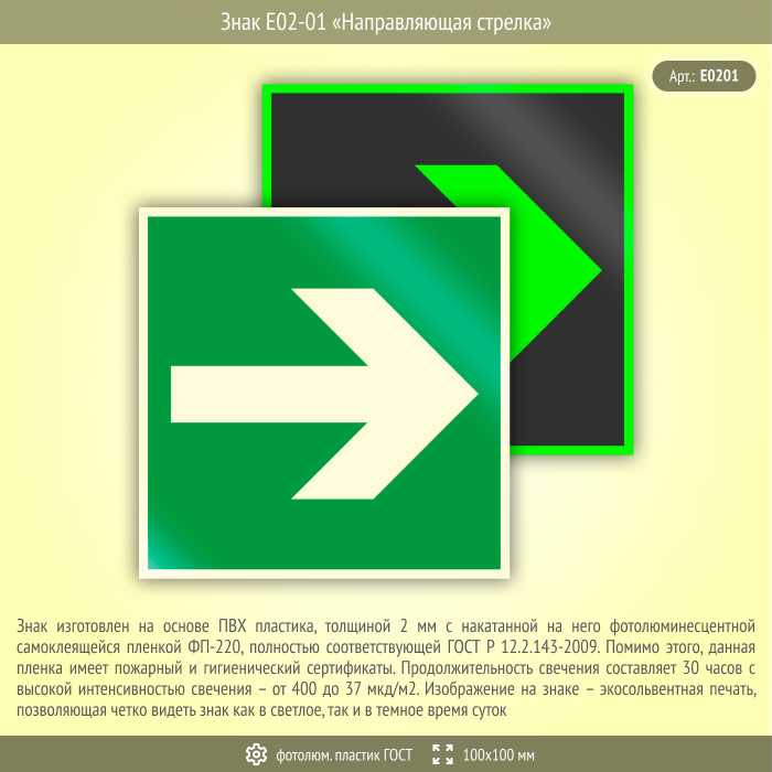 Знак E02-01 «Направляющая стрелка» (фотолюминесцентный пластик ГОСТ 34428-2018, 100х100 мм) в Ульяновске купить