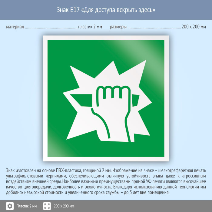 Знак E17 «Для доступа вскрыть здесь» (пластик, 200х200 мм) в Ульяновске купить