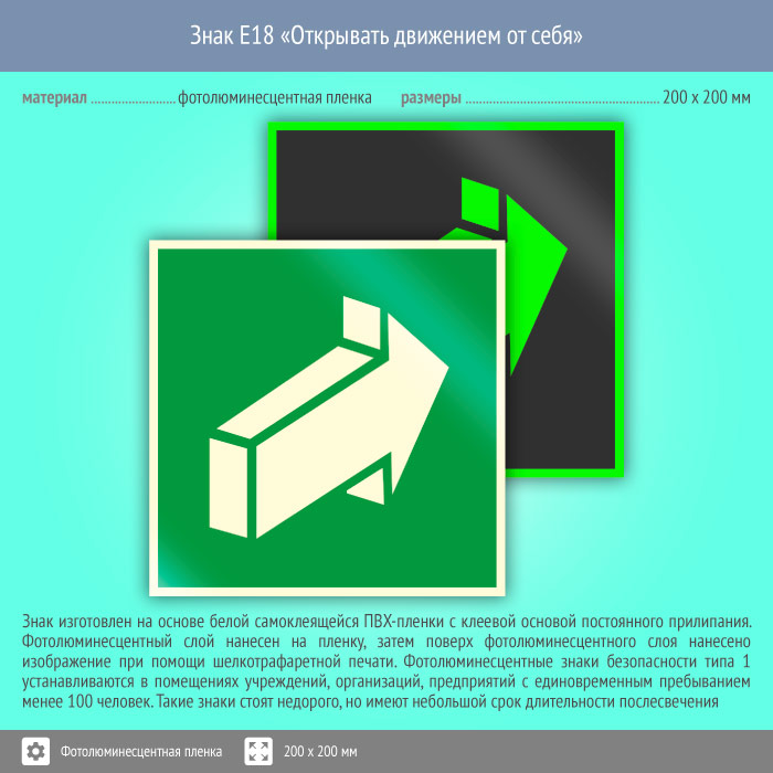 Знак E18 «Открывать движением от себя» (фотолюминесцентная пленка, 200х200 мм) в Ульяновске купить
