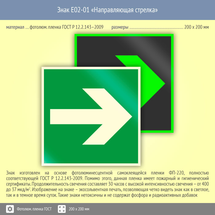 Знак E02-01 «Направляющая стрелка» (фотолюминесцентная пленка ГОСТ 34428-2018, 200х200 мм) в Ульяновске купить