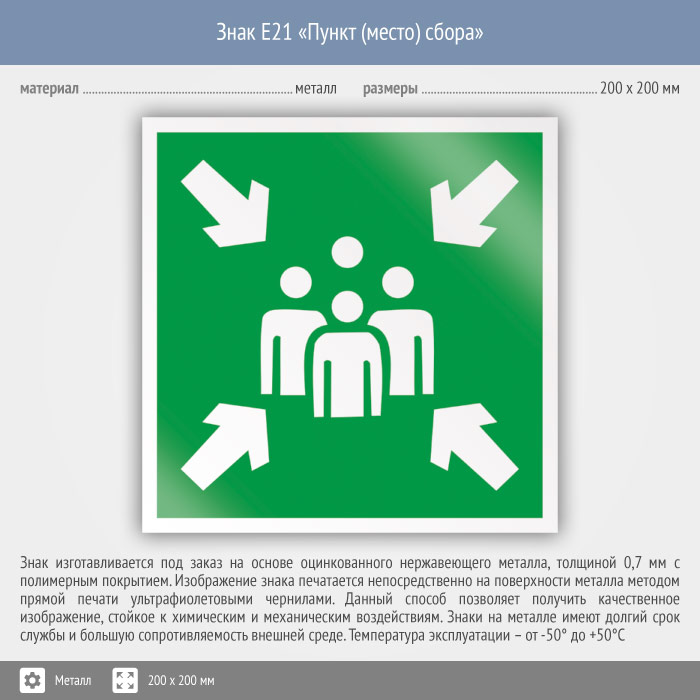 Знак E21 «Пункт (место) сбора» (металл, 200х200 мм) в Ульяновске купить