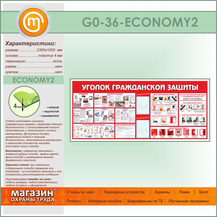 Стенд «Уголок гражданской защиты» c 2 карманами (GO-36-ECONOMY2) в Ульяновске купить
