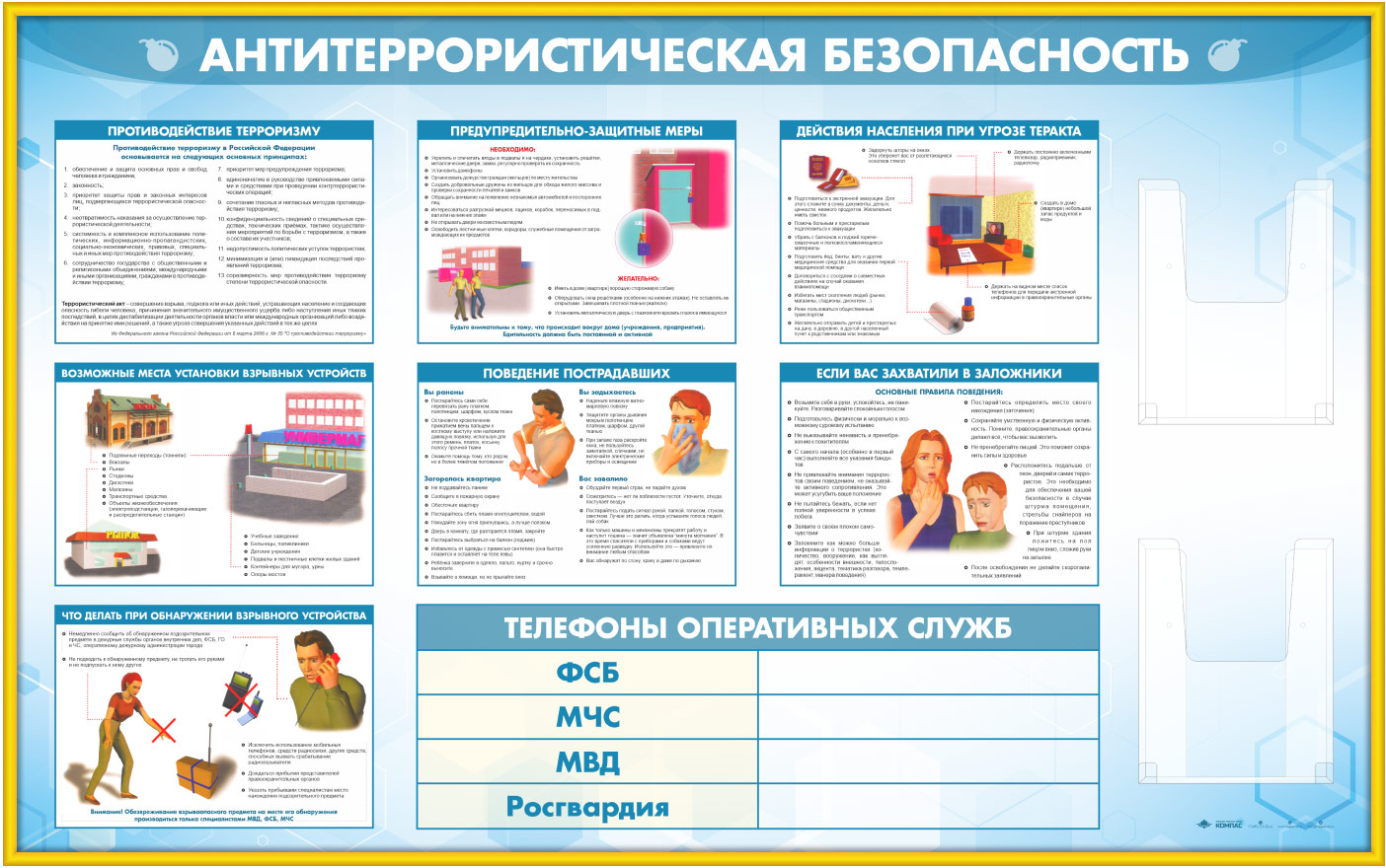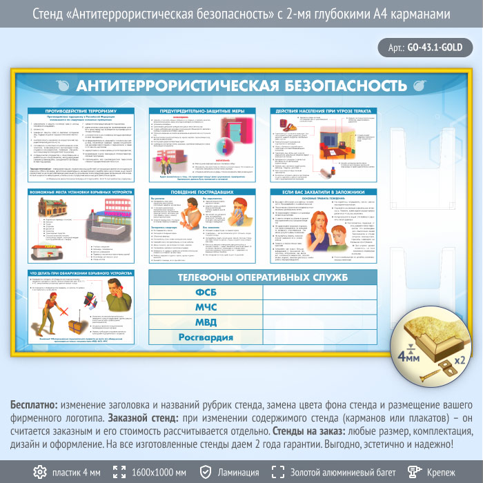 Стенд «Антитеррористическая безопасность» с 2-мя глубокими А4 карманами (GO-43.1-GOLD) в Ульяновске купить