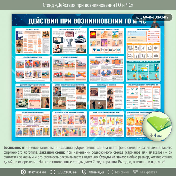 Стенд «Действия при возникновении ГО и ЧС» (GO-46-ECONOMY2) в Ульяновске купить