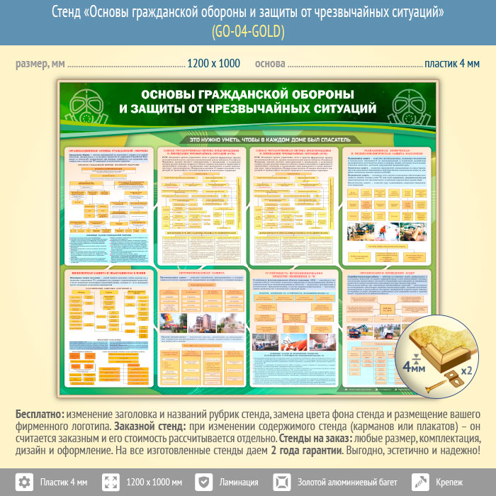 Стенд «Основы гражданской обороны и защиты от чрезвычайных ситуаций» (GO-04-GOLD) в Ульяновске купить