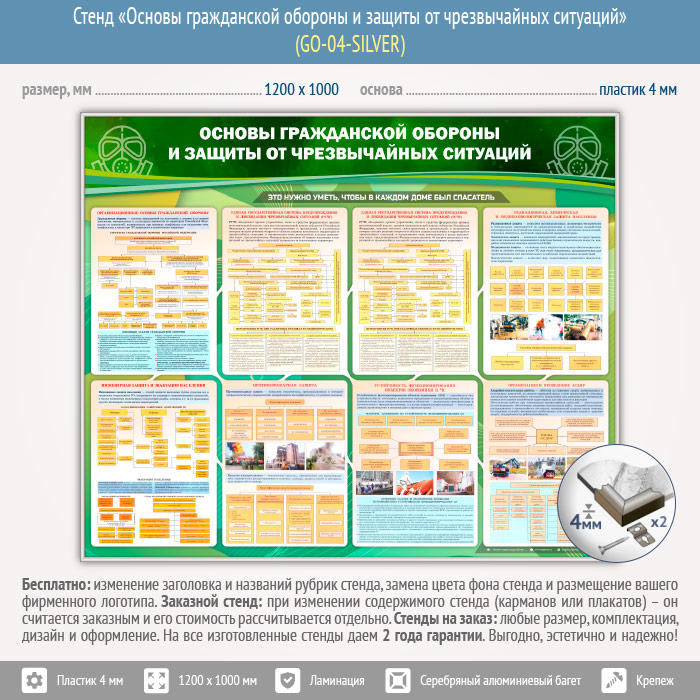 Стенд «Основы гражданской обороны и защиты от чрезвычайных ситуаций» (GO-04-SILVER) в Ульяновске купить
