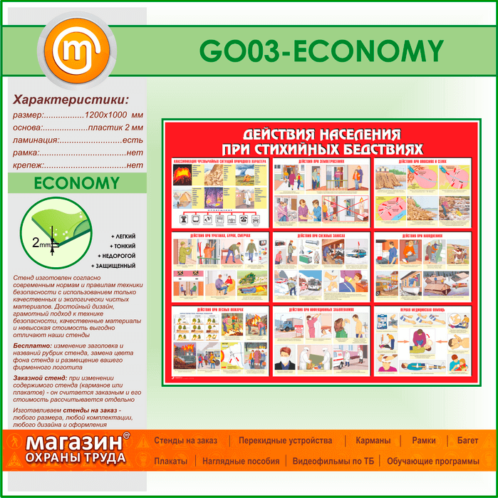 Стенд «Действия населения при стихийных бедствиях» (GO-03-ECONOMY) в Ульяновске купить