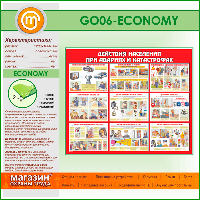 Стенд «Действия населения при авариях и катастрофах» (GO-06-ECONOMY) в Ульяновске купить