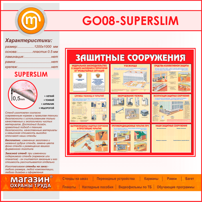 Стенд «Защитные сооружения» (GO-08-SUPERSLIM) в Ульяновске купить