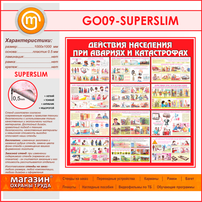 Стенд «Действия населения при авариях и катастрофах» (GO-09-SUPERSLIM) в Ульяновске купить
