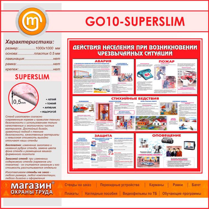 Стенд «Действия населения при возникновении чрезвычайных ситуаций» (GO-10-SUPERSLIM) в Ульяновске купить