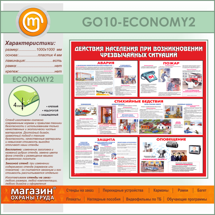 Стенд «Действия населения при возникновении чрезвычайных ситуаций» (GO-10-ECONOMY2) в Ульяновске купить
