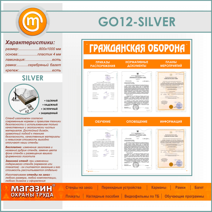 Стенд «Гражданская оборона» с 6 плоскими карманами (GO-12-SILVER) в Ульяновске купить