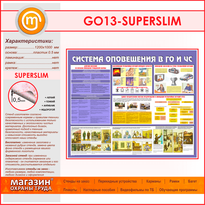 Стенд «Система оповещения в ГО и ЧС» (GO-13-SUPERSLIM) в Ульяновске купить