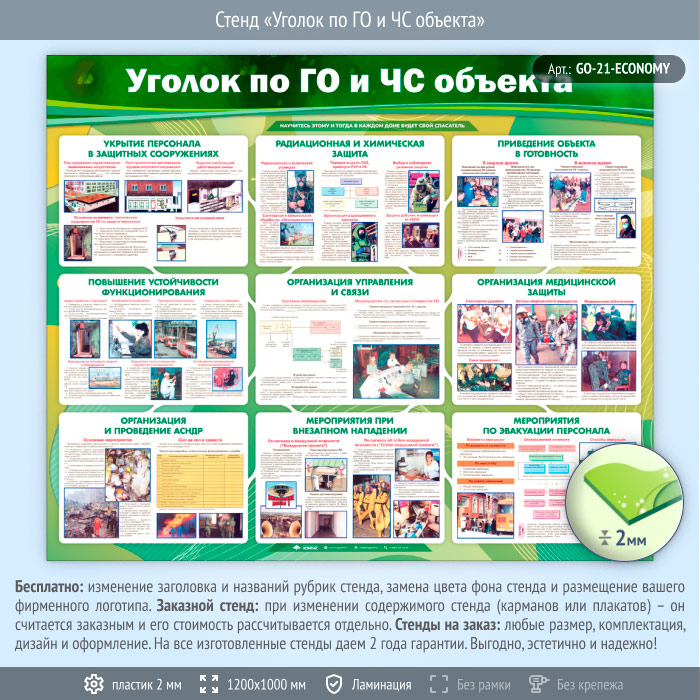 Стенд «Уголок по ГО и ЧС объекта» (GO-21-ECONOMY) в Ульяновске купить
