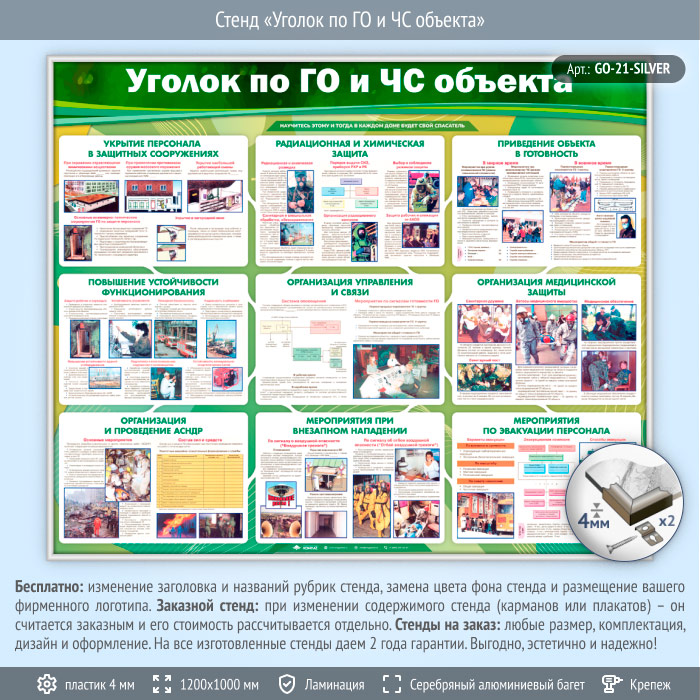 Стенд «Уголок по ГО и ЧС объекта» (GO-21-SILVER) в Ульяновске купить
