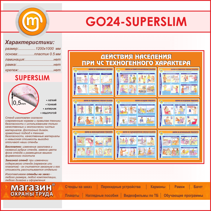 Стенд «Действия населения при ЧС техногенного характера» (GO-24-SUPERSLIM) в Ульяновске купить