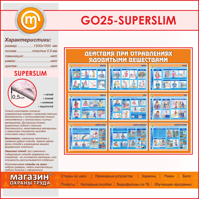 Стенд «Действия при отравлении ядовитыми веществами» (GO-25-SUPERSLIM) в Ульяновске купить