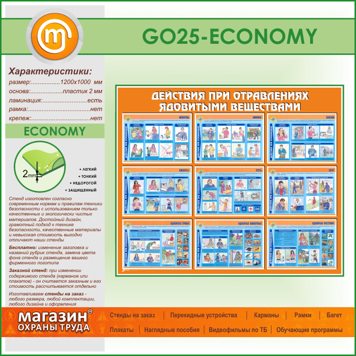 Стенд «Действия при отравлении ядовитыми веществами» (GO-25-ECONOMY) в Ульяновске купить